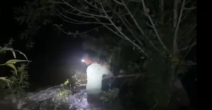 Tối 30/10, anh N.C.T. (41 tuổi, trú tại thôn Mỹ Thạch, xã Bình Hiệp) điều khiển xe máy qua đoạn bờ tràn nối thôn Phú Hưng đi Thuận Hòa thì không may bị nước lũ cuốn cả người lẫn xe xuống suối. Dòng nước chảy xiết khiến anh T. chới với giữa đêm tối, kêu cứu trong tuyệt vọng.