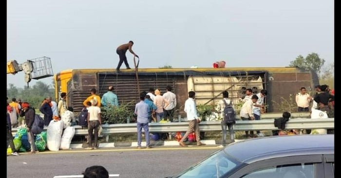 Tai nạn xe buýt tại Ấn Độ, phương tiện lật nghiêng trên cao tốc
