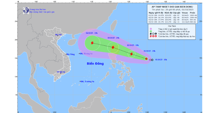 Dự báo vào lúc 19 giờ tối cùng ngày, áp thấp nhiệt đới sẽ mạnh lên thành bão và tiến gần khu vực phía Tây Biển Đông. Diễn biến nhanh và phức tạp khiến các cơ quan chức năng khẩn trương ban hành cảnh báo, yêu cầu các địa phương có phương án ứng phó kịp thời.