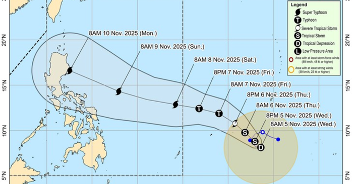 Theo Trung tâm Dự báo khí tượng thủy văn quốc gia; trưa 5-11, một áp thấp nhiệt đới vừa xuất hiện ở ngoài khơi phía đông Philippines. Dự báo trong 24 đến 48 giờ tới, hệ thống này có thể mạnh lên thành bão; di chuyển theo hướng tây bắc và ảnh hưởng trực tiếp đến đảo Luzon.