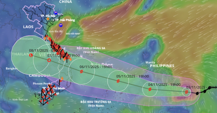 Tối 3/11, Trung tâm Dự báo Khí tượng Thủy văn Quốc gia cho biế; bão Kalmaegi sau khi vào Biển Đông tiếp tục mạnh lên; dự kiến đạt cấp 14, giật cấp 17, ảnh hưởng trực tiếp từ Đà Nẵng đến Khánh Hòa.
