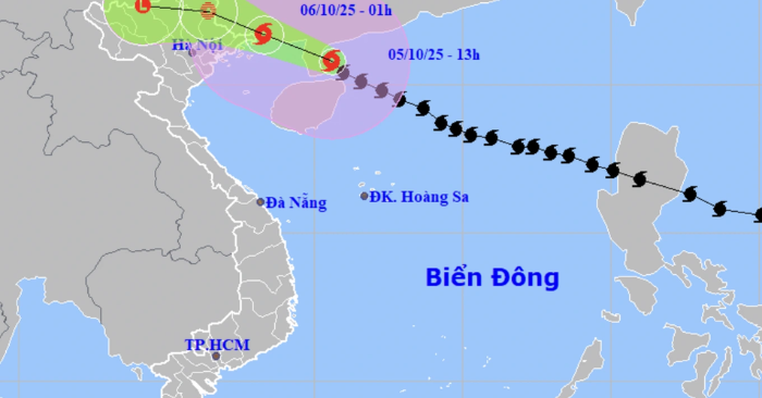 Theo dự báo thời tiết, tối 5/10 bão sẽ vượt qua đảo Lôi Châu, đi vào Bắc Vịnh Bắc Bộ, sau đó đổ bộ đất liền khu vực giữa tỉnh Quảng Ninh (Việt Nam) và Quảng Tây (Trung Quốc) từ nửa đêm 5/10 đến rạng sáng 6/10.