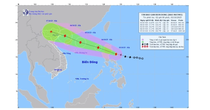 Bão Matmo đang di chuyển vào Biển Đông với sức gió mạnh giật cấp 13. Từ ngày 3/10, vùng biển phía Đông khu vực Bắc Biển Đông bắt đầu có gió mạnh, sóng cao, tiềm ẩn nguy hiểm cho tàu thuyền.