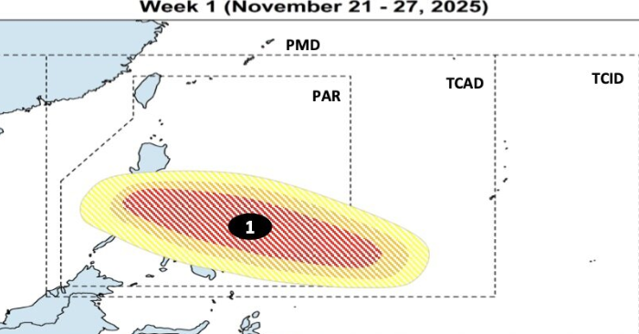 PAGASA cảnh báo một áp thấp đang mạnh dần và có thể trở thành bão số 15. Trong tuần từ ngày 21–27.11, khả năng đổ bộ Philippines, rồi vào Biển Đông; hướng tây về gần Việt Nam, gây mưa lớn diện rộng.