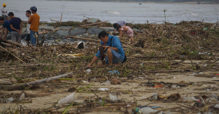 Rác phủ kín bãi biển sau mưa lớn