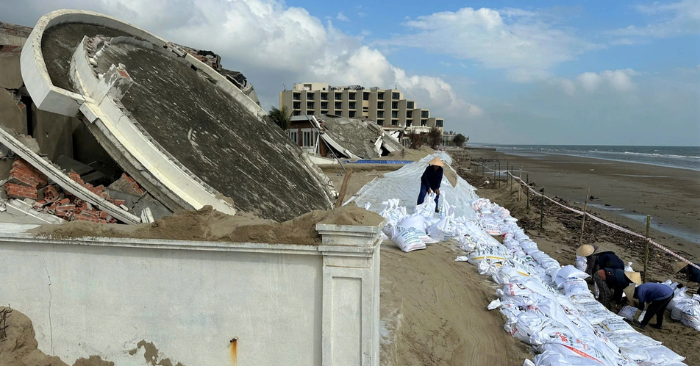 Hàng chục căn biệt thự bị sóng đánh sập, nghi vấn không có kè chắn biển