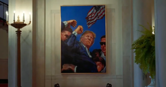 Bức tranh mô phỏng lại khoảnh khắc ông Trump bị ám sát hụt. (Ảnh: Dân Trí)