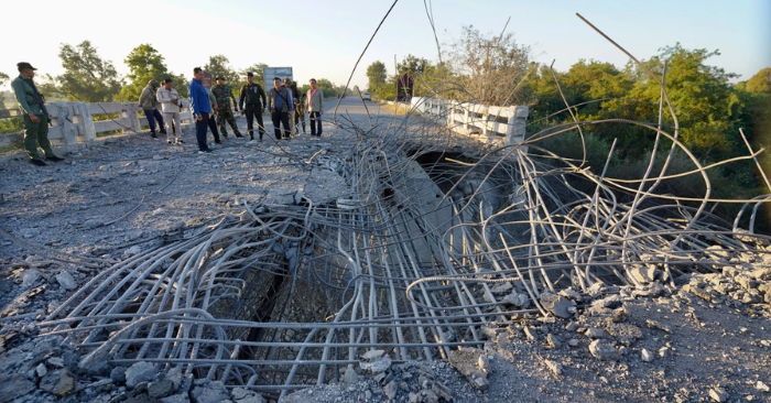 Hình ảnh do truyền thông Campuchia công bố cho thấy nhiều lỗ thủng lớn trên mặt cầu, phần cốt thép bị lộ và đứt gãy, khiến các phương tiện không thể lưu thông. Phnom Penh nhận định thiệt hại này gây gián đoạn nghiêm trọng sinh kế và đời sống dân cư tại hai tỉnh.