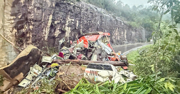 Báo cáo của Đội Cảnh sát giao thông đường bộ Phòng PC08 Khánh Hòa cho biết xe khách Phương Trang biển kiểm soát 50H-531… chạy hướng Đà Lạt về Nha Trang, đến Km 45 thì bất ngờ bị đá tảng lớn cùng đất cát từ triền núi rơi xuống. Cú sạt mạnh khiến xe hư hỏng nặng và gây thiệt hại lớn về người.