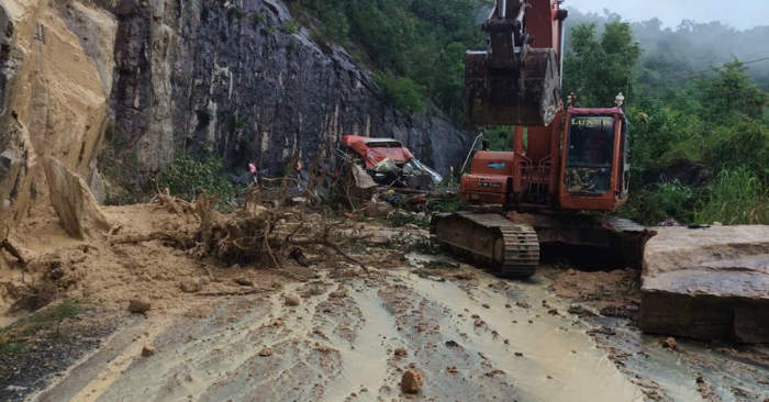 Theo ghi nhận tại quốc lộ 27C, khu vực đèo đang có mưa lớn kéo dài, nhiều đoạn ngập sâu khiến việc tiếp cận hiện trường gặp nhiều khó khăn. Lượng đất đá sạt xuống tạo thành khối trượt lớn, bao phủ gần như toàn bộ vị trí xe khách dừng lại.