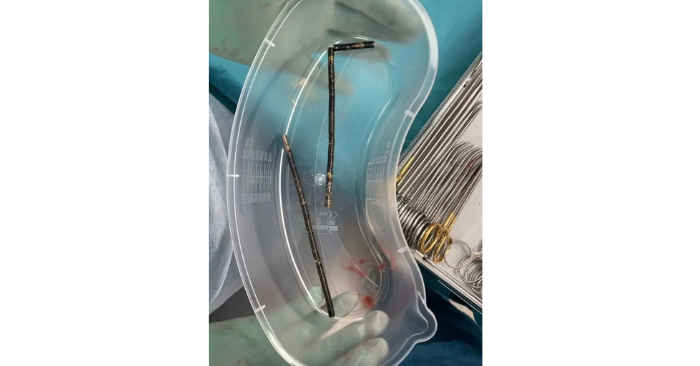 Tuy nhiên, khi phẫu thuật, các bác sĩ lấy ra gần 200 viên nam châm từ ruột bệnh nhi. Phim X-quang cho thấy bốn chuỗi nam châm mắc kẹt ở các đoạn khác nhau trong đường tiêu hóa, hút chặt vào nhau và cản trở lưu thông máu đến các mô lân cận.