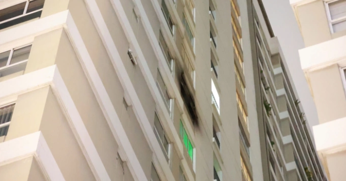 Khoảng 18h45, nhiều người dân nghe tiếng chuông báo cháy réo liên tục; cùng lúc khói đen dày đặc bốc ra từ một căn hộ ở tầng 11. Nguồn điện bị cắt khiến hành lang tối om, cư dân cuống cuồng chạy theo chỉ dẫn thoát hiểm.