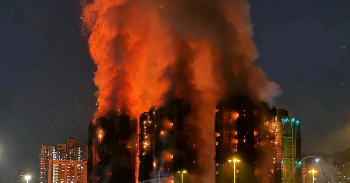 Hỏa hoạn tại cụm chung cư ở Hong Kong ngày 26/11 (Ảnh: Chụp màn hình / Dân Trí)