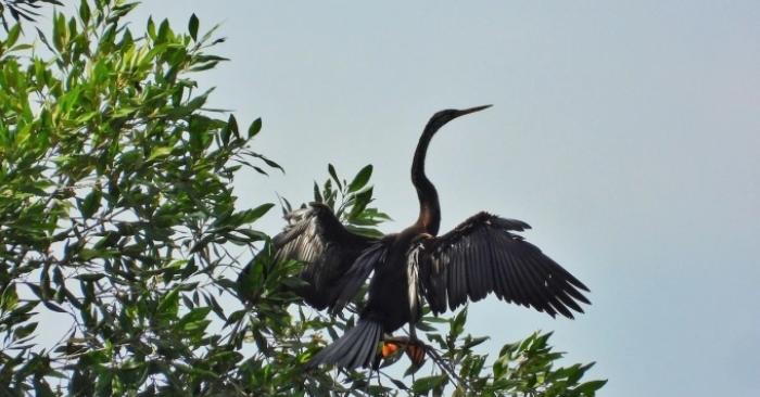 Theo ghi nhận thực tế; ban đầu khu vực này chỉ xuất hiện, hai cá thể chim cổ rắn trưởng thành,sau đó tăng lên bốn con; hình thành một đàn nhỏ. Mỗi con cao khoảng 60–70 cm; sải cánh gần một mét; lông đen ánh kim và phần mỏ dưới có màu cam đặc trưng.
