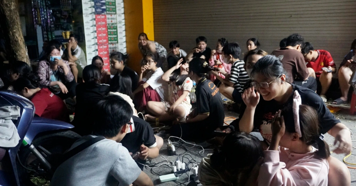 Hàng trăm người dân, học sinh; sinh viên đã tập trung tại cửa hàng suốt đêm để sạc điện thoại, đèn pin, thiết bị học tập.