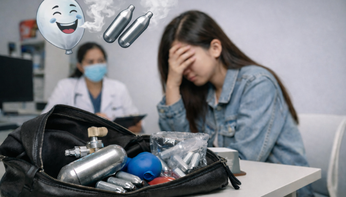 Nghiện khí cười từ sớm, mang bình N2O theo người