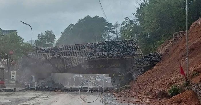 Ngay sau sự cố, lực lượng chức năng cùng chính quyền xã đã nhanh chóng có mặt tại hiện trường, tổ chức thu dọn đất đá, đảm bảo an toàn giao thông và lập phương án khôi phục lại cổng chào trong thời gian tới.