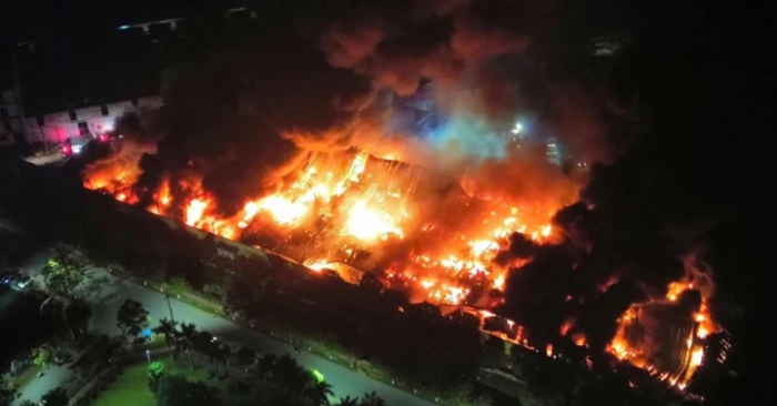 Theo ghi nhận tại hiện trường, đám cháy bùng phát mạnh, khói đen cuồn cuộn bốc cao trong đêm. Do doanh nghiệp chuyên sản xuất các sản phẩm từ nhựa, cao su tổng hợp và bao bì – những vật liệu dễ cháy – nên ngọn lửa lan nhanh, phát sinh lượng lớn khói và khí độc.