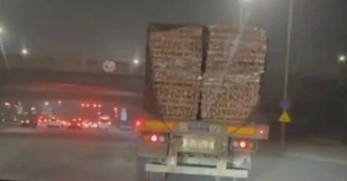 Phát hiện ô tô đầu kéo chở gạch chằng buộc nguy hiểm giữa khu đô thị