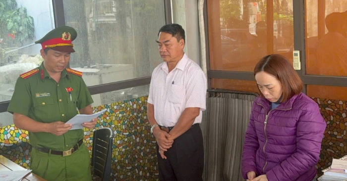 Công an Đà Nẵng thi hành quyết định khởi tố với các bị can trong vụ án. (Ảnh: Chụp màn hình báo Dân trí)