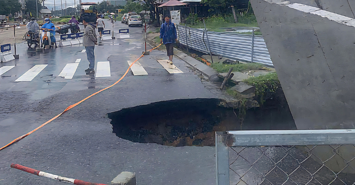 Ngày 3/11, trên tuyến đường Nam Kỳ Khởi Nghĩa (phường Ngũ Hành Sơn, TP Đà Nẵng), đoạn qua Làng Đại học Đà Nẵng xuất hiện một hố sụt lún lớn, kéo dài từ lòng đường đến vỉa hè. Theo ghi nhận, miệng hố có kích thước khoảng 4m x 4m, sâu hơn 1m, gây nguy hiểm cho người tham gia giao thông.