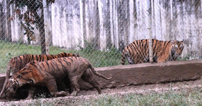Đàn hổ này được nuôi nhốt nhiều năm, gồm 9 cá thể, trong đó có 3 con cái, nặng trung bình 180 kg/con, cá thể lớn nhất gần 300 kg. Tổng số hổ ban đầu là 15 con, nhưng 6 con đã chết theo thời gian.