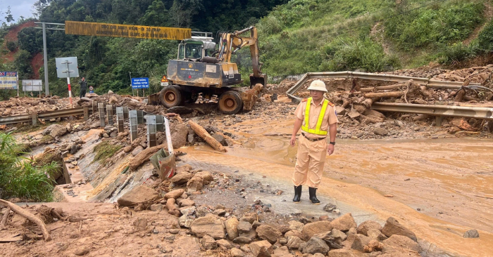Khu Quản lý đường bộ III cho biết đang khẩn trương thu dọn đất đá; khơi thông dòng chảy, đảm bảo an toàn giao thông qua đèo Lò Xo trong thời gian sớm nhất.