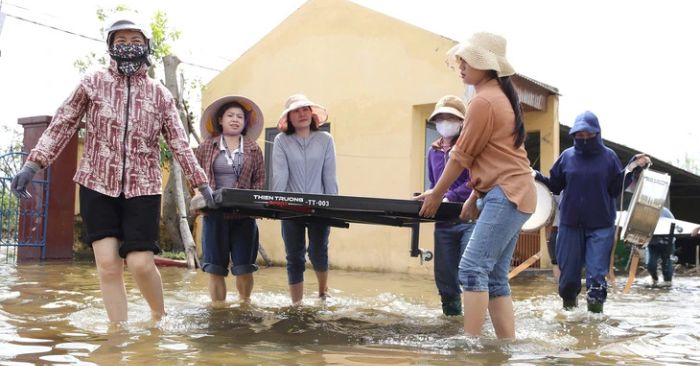 Không kịp hoàn hồn sau bão, lũ bất ngờ tràn về khiến nước dâng gần 1,5m, nhiều tài sản bị hư hỏng. Các thầy cô phải vớt bàn ghế, thiết bị ngâm trong nước, kê lên cao để hạn chế hư hại. Tại Trường mầm non Quang Vĩnh, tình cảnh cũng không khá hơn khi hai dãy phòng học bị tốc mái, nhiều thiết bị trẻ em bị nước cuốn trôi, thiệt hại khoảng 500 triệu đồng.