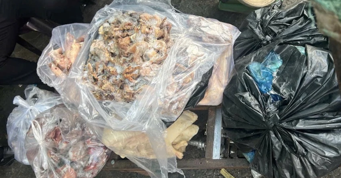 Qua kiểm tra thực tế, đoàn công tác phát hiện nhiều loại thịt cá được xếp trong các thùng nhựa và bao bì không có thông tin nhận diện. Toàn bộ số hàng đang trong tình trạng chờ đưa ra thị trường tiêu thụ, làm dấy lên lo ngại về nguy cơ thực phẩm không bảo đảm an toàn len lỏi vào bữa ăn người dân.
