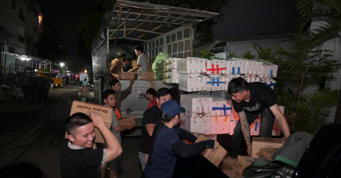 Trong đêm 20/11; hàng trăm thùng mì, sữa, áo phao được người dân TPHCM góp gấp làm hàng cứu trợ gửi về vùng lũ miền Trung. Mọi người đã thức trắng đêm để kịp đưa hàng đến vùng tâm lũ trong thời điểm khó khăn nhất.