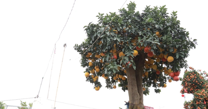 Tại một nhà vườn ở xã Mễ Sở, tỉnh Hưng Yên, gốc bưởi cổ thụ hơn 100 năm tuổi, được ghép công phu và nuôi dưỡng suốt nhiều năm, đang gây ấn tượng mạnh khi sai trĩu khoảng 400 quả, trở thành tâm điểm chú ý của giới chơi cây cảnh dịp Tết.