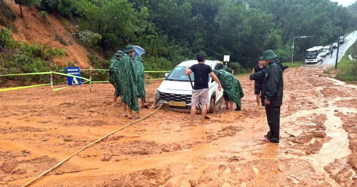 Ngày 3/11, tại xã Chân Mây – Lăng Cô (TP Huế), mưa lớn kéo dài khiến đất đá tiếp tục đổ xuống tuyến đường qua khu vực thôn Cảnh Dương. Chiếc ô-tô mang biển số 75H-01813 do ông Bùi Nguyễn Ngọc Anh (sinh năm 1994, trú tại thôn Cảnh Dương) điều khiển đã bị mắc kẹt giữa điểm sạt lở.