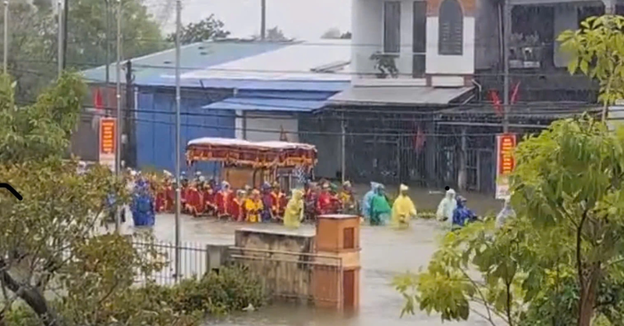 Do ảnh hưởng của mưa lớn kéo dài, “Huế lũ dâng mênh mông, dân lội nước lụt đưa tang người quá cố” khiến nhiều người xúc động. Giữa dòng nước ngập sâu, người dân vẫn nặng tình hiếu đạo, cùng nhau tổ chức tang lễ trong hoàn cảnh đầy khắc nghiệt của thiên tai.