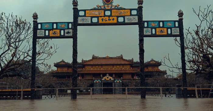 Nhiều di tích nổi tiếng của Cố đô Huế đang chịu ảnh hưởng nặng do lũ. Nước đã tràn vào khu vực Nghinh Lương Đình; đường dẫn đến cổng Ngọ Môn và bên trong Đại nội Huế.