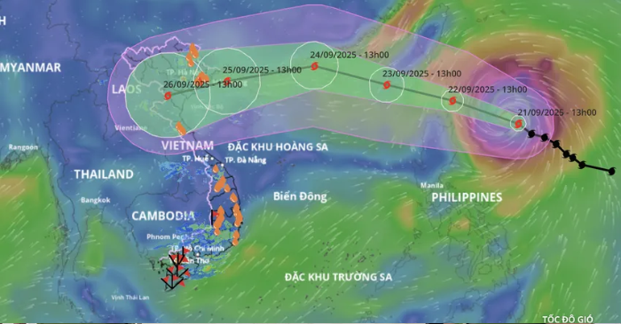 Từ ngày 24-9, Bắc Biển Đông có gió mạnh cấp 10-14, gần tâm bão cấp 15-17, sóng biển cao trên 10m.