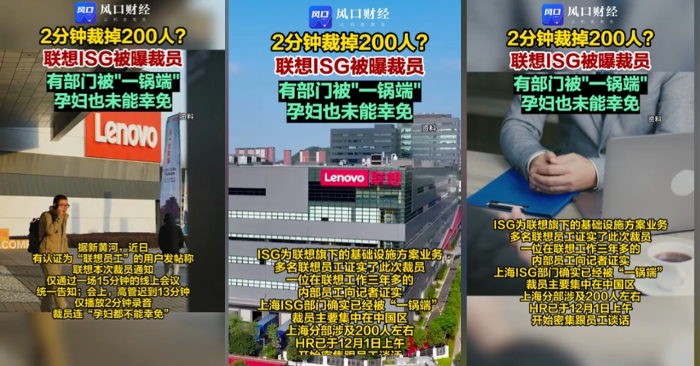 Những ngày gần đây, mạng xã hội Trung Quốc lan truyền thông tin về một đợt cắt giảm nhân sự tại bộ phận ISG của Lenovo ở Thượng Hải, thu hút sự quan tâm lớn của dư luận. Theo phản ánh từ nhiều nhân viên, họ được triệu tập tham gia một cuộc họp trực tuyến, ban đầu được thông báo sẽ kéo dài khoảng 15 phút. Tuy nhiên, cuộc họp diễn ra theo cách khiến nhiều người bất ngờ và bức xúc.