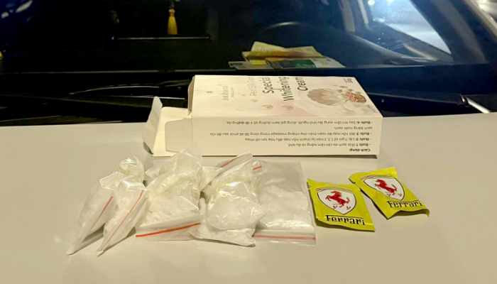Cảnh sát kiểm tra xe và phát hiện 2 túi nilon màu vàng dưới vô lăng. Hai túi này có chữ Ferrari và được hàn kín mép. Dưới ghế lái có 1 hộp Carton màu trắng. Hộp này có chữ Perl Silk Rich và chứa 7 túi tinh thể trắng nghi ma túy. Đấu tranh tại chỗ, Trần Đức Quân khai đó là Ketamin và nước vui. Nhóm mua số ma túy từ một người lạ để bán kiếm lời. Tổ công tác bàn giao ba đối tượng cùng tang vật cho Công an phường Xuân Phương để điều tra.