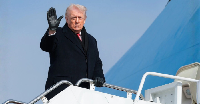 Tổng thống Donald Trump vẫy tay khi ông lên Air Force One ở Căn cứ chung Andrews, Md., vào ngày 16 tháng 1 năm 2026. (Ảnh: Chụp màn hình/Khai Mở)