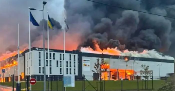 Khu công nghiệp Sparrow ở Lviv bốc cháy (Ảnh: Tin Tức)