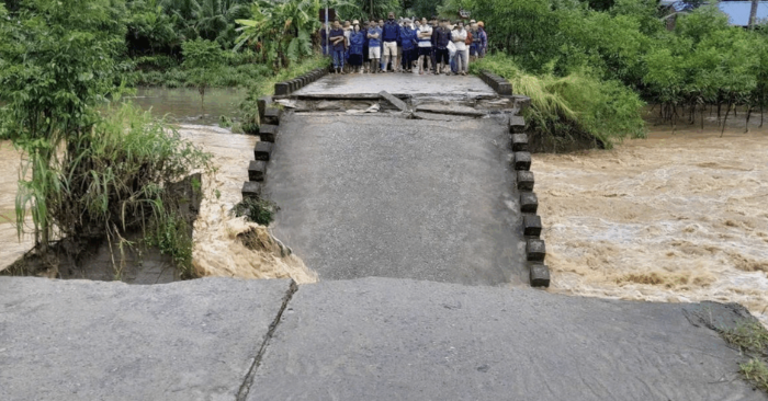 Mưa lớn Quảng Ngãi, gây sập cầu liên thôn Cây Sung sáng 2/11 tại xã Bình Minh; khiến một người rơi xuống nước và hơn 1.200 dân bị chia cắt.