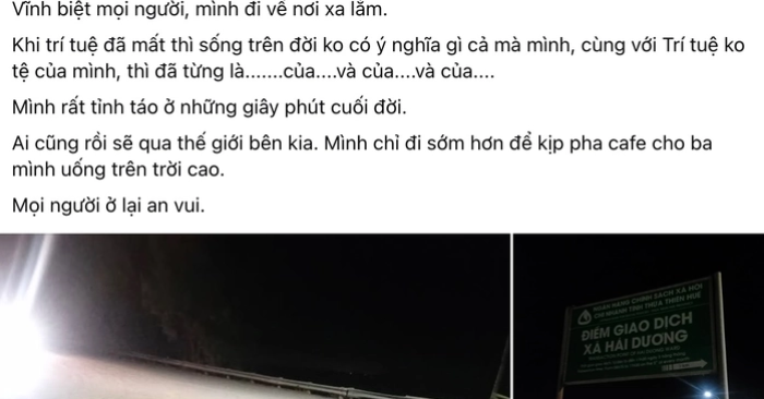 Trước khi xảy ra vụ việc, nam thanh niên ở TP Huế đã đăng lên mạng xã hội dòng trạng thái: “Mình rất tỉnh táo ở những giây phút cuối đời…”, khiến nhiều người xót xa.