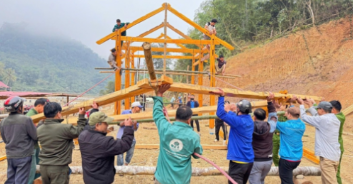 Trong quá trình khắc phục hậu quả thiên tai, lực lượng vũ trang đứng chân trên địa bàn đã phát huy rõ vai trò nòng cốt. Cán bộ, chiến sĩ Bộ đội Biên phòng, Công an cùng đoàn viên thanh niên xã đã trực tiếp xuống bản làng, hỗ trợ người dân vận chuyển vật liệu, dựng nhà, san nền và làm đường nội bản. Những ngày công lặng thầm ấy đã góp phần quan trọng giúp các hộ dân sớm ổn định nơi ăn chốn ở.