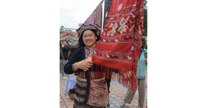 Đại diện Điện Biên là ba nghệ nhân đến từ bản Na Sang II, xã Núa Ngam. Sản phẩm dự thi được dệt thủ công hoàn toàn từ sợi bông và tơ tằm. Mỗi đường dệt thể hiện sự kiên nhẫn, khéo léo và tinh tế của người phụ nữ dân tộc Lào.