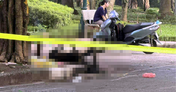 Vào sáng cùng ngày, khi nhiều người đang tập thể dục tại công viên, họ bàng hoàng phát hiện thi thể một người đàn ông cạnh gốc cây. Bên cạnh nạn nhân có chiếc xe máy và một người phụ nữ liên tục gào khóc thảm thiết trước cảnh tượng đau lòng.