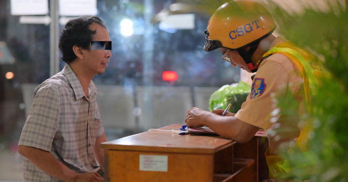 Khoảng 22h25, tổ công tác phát hiện ông N.D.P. (ngụ tỉnh Đồng Nai) điều khiển xe máy có biểu hiện say xỉn nên yêu cầu dừng xe kiểm tra. Kết quả đo cho thấy ông P. có nồng độ cồn 0,705mg/lít khí thở, đồng thời không xuất trình được giấy phép lái xe và thẻ căn cước.