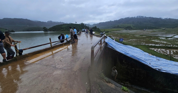 Những ngày qua, do mưa lớn tại Lâm Đồng kéo dài, mực nước hồ dâng cao, tạo áp lực lớn lên thân đập khiến xuất hiện vết nứt và rò rỉ — tiềm ẩn nguy cơ vỡ hồ chứa nước Cay An.