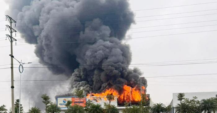 Theo thông tin ban đầu, khoảng 8h40, ngọn lửa bất ngờ phát ra bên trong nhà xưởng đang trong quá trình hoàn thiện. Chỉ trong thời gian ngắn, đám cháy lan nhanh, bao trùm toàn bộ khu vực nhà xưởng, tạo thành cột khói đen cuồn cuộn bốc cao hàng chục mét, khiến nhiều người dân xung quanh hoảng hốt.