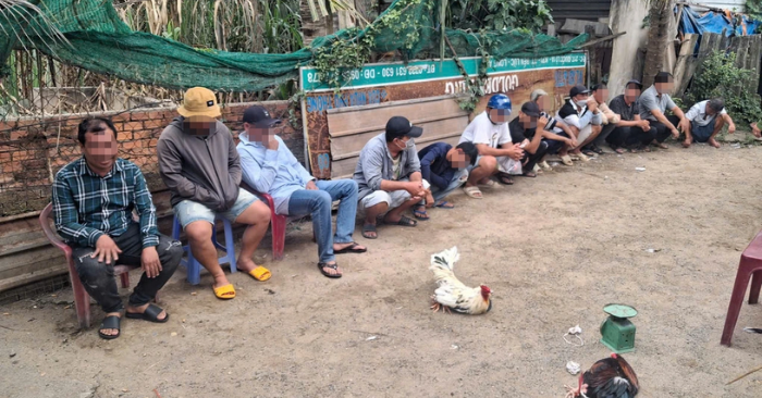 Công an xã Bến Lức, Tây Ninh đột kích sới đá gà lúc 11h ngày 11/1, bắt quả tang 14 người cá độ, thu giữ nhiều tang vật, làm rõ hành vi tổ chức đánh bạc trái phép.