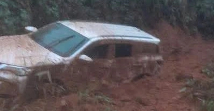 Ô tô 7 chỗ bị đất đá vùi lấp, hai người mắc kẹt trong xe