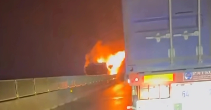 Ô tô khách bốc cháy trên cao tốc Bắc Nam giữa đêm, giao thông gián đoạn